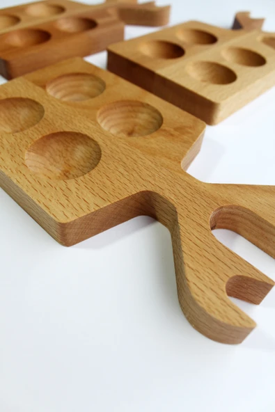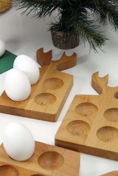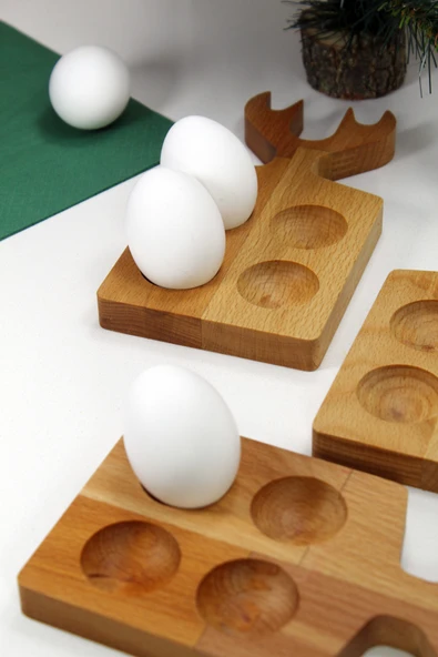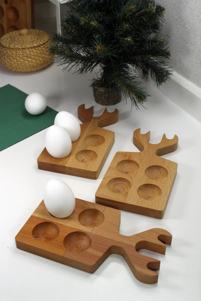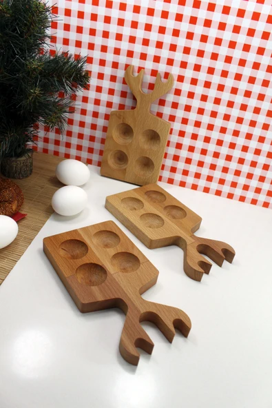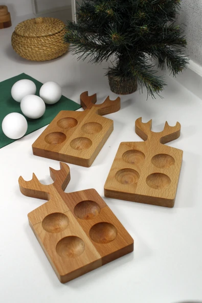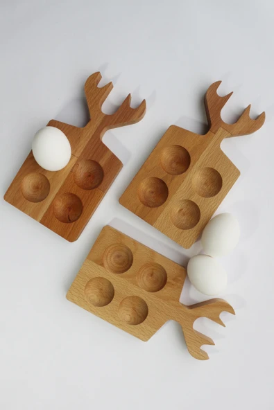 Teknofors ( 3'lü SET ) 4'lü Ahşap Geyik Saplı Yumurtalık %100 Kayın Ağacı
