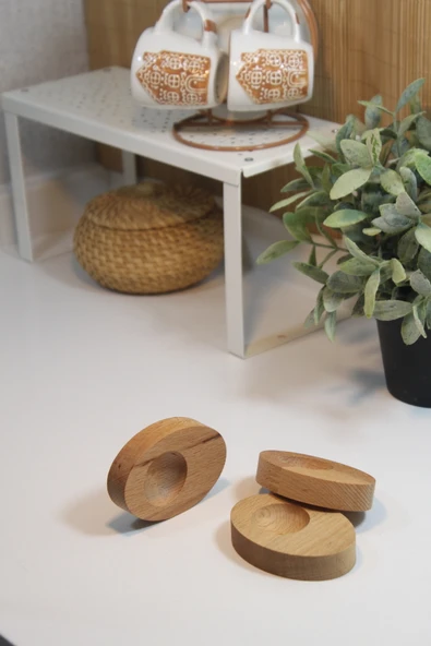 zeyvedesign 4'lü Ahşap Elips Saplı Yumurtalık %100 Kayın Ağacı