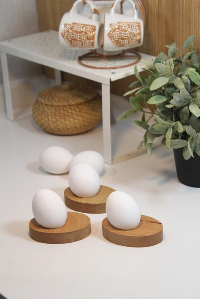 zeyvedesign 4'lü Ahşap Saplı Yumurtalık %100 Kayın Ağacı