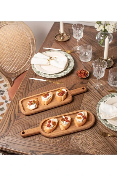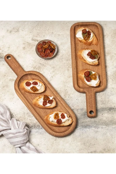aysahşap Ahşap 2'li Sunum Tahtası - Steak Sunum - Ahşap Servis Tabağı - Ahşap Sunumluk