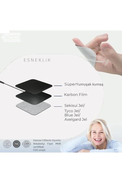 EVERYWAY Tens Elektrod Pedi 5x5 cm Kablolu 4lü Paket 3 Adet