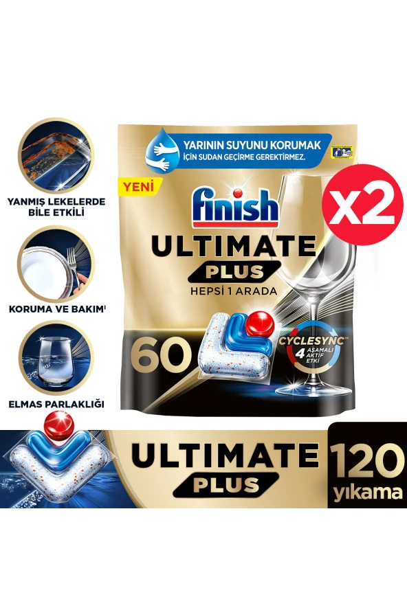 FİNİSH Ultimate Plus Hepsi Bir Arada 120 Kapsül Bulaşık Makinesi Deterjanı Tableti (60X2)