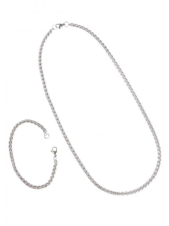 JTAW24KBK1385 JANTİ ERKEK KOMBİN ÇELİK KOLYE BİLEKLİK PASLANMAZ 316L SAÇ ÖRGÜ DESEN TASARIM GARANTİLİ