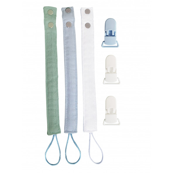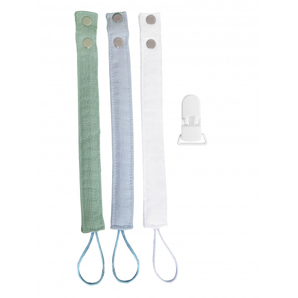 3'lü Pamuk Müslin Bebek Emzik Askısı Plastik Klips Kolay Açılır Emzik Tutacağı /Emzik Zinciri