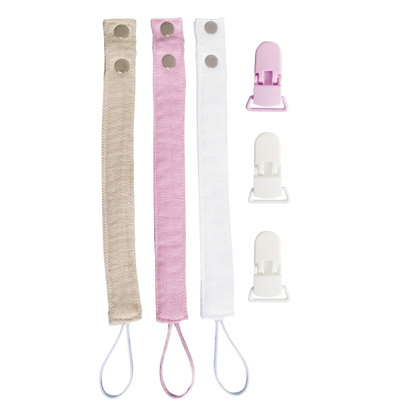 3'lü Pamuk Müslin Bebek Emzik Askısı Plastik Klips Kolay Açılır Emzik Tutacağı /Emzik Zinciri