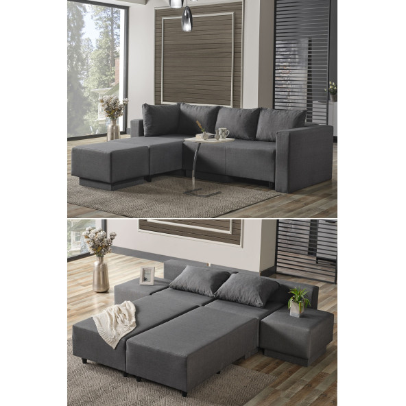 KAGU CORNER POLY-L KÖŞE TAKIMI-KANEPE-YATAK-DİNLENME-GRİ