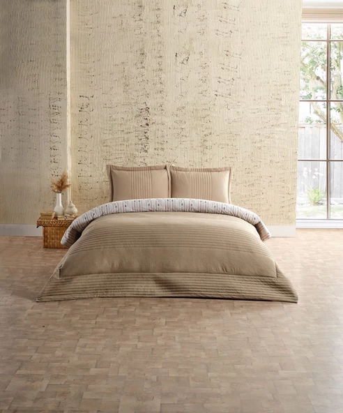 DOQU MULTİ SELECTİON NEVRESİM TAKIMI YATAK ÖRTÜSÜ TEK KİŞİLİK EKRU