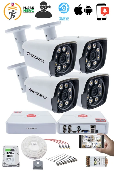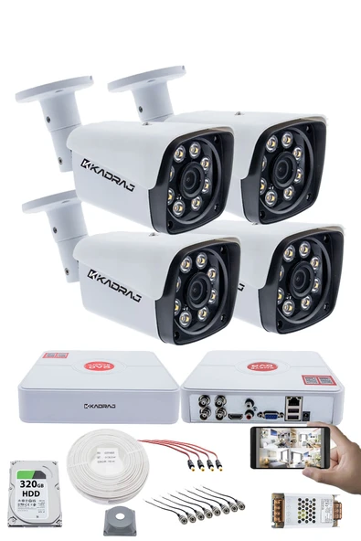 4 Kameralı Set Kadraj - 5MP Sony SecuLensli 1080p Full HD AHD Güvenlik Kamerası - Gece Görüşlü, 8 Ultra Warm Led, Colorvu Teknolojisi, Metal Aluminyum