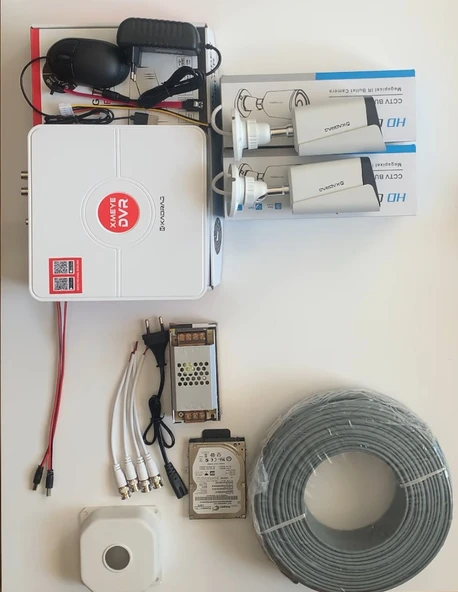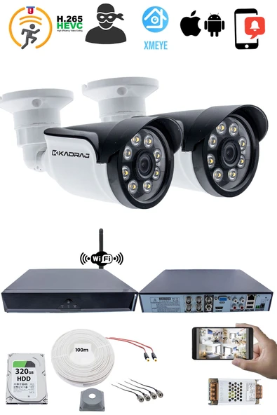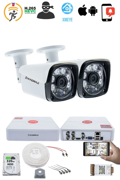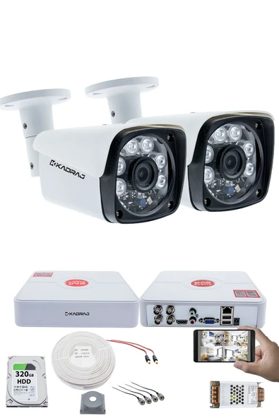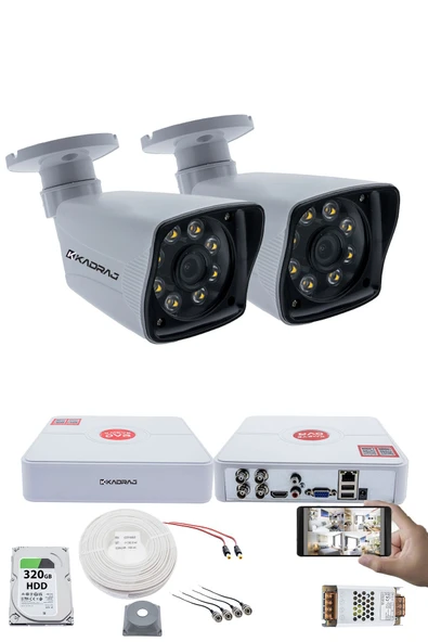 2 Kameralı Güvenlik Kamera Seti - Ekstra Uzun Mesafeli Güçlü, 5MP Sony Lens, 70m Dayanıklı Kablolama, 6 Atom LED, 320GB H.D.D