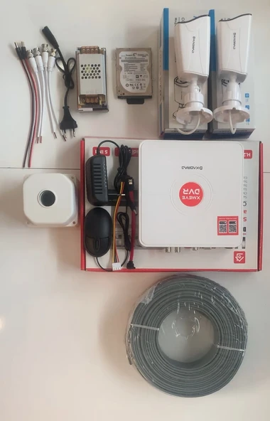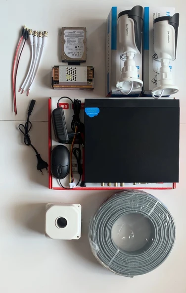 2 Kameralı Güvenlik Kamera Seti - Ekstra Uzun Mesafeli Güçlü, 5MP Sony Lens, 70m Dayanıklı Kablolama, 6 Atom LED, 500GB H.D.D