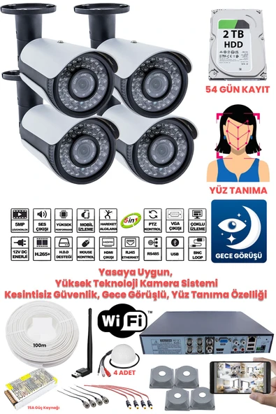 Kadraj Güvenlik Kamera Seti - 4 Kameralı - 5MP Sony SecuLens, Full HD, Gece Görüşü, Yasalara Uygun, 2TB Disk + Ses Alma