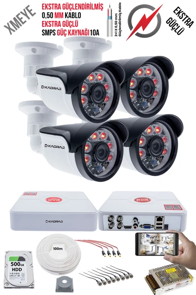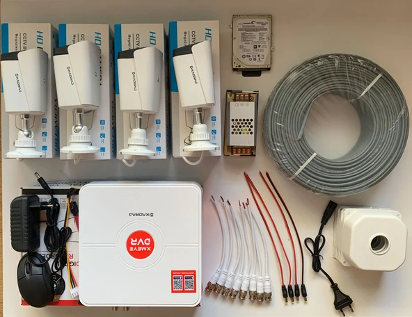 4 Kameralı Güvenlik Kamera Seti - Ekstra Uzun Mesafeli Güçlü, 5MP Sony Lens, 70m Dayanıklı Kablolama, 6 Atom LED, 500gb H.D.D