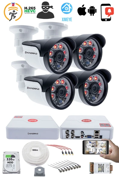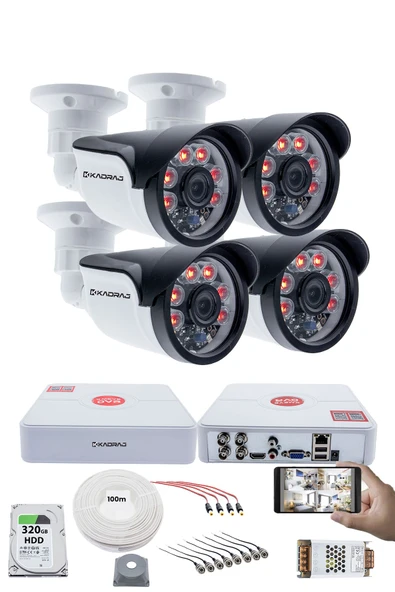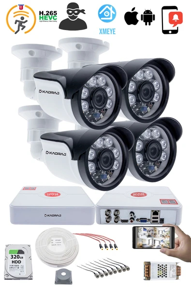 2 Kameralı Güvenlik Kamera Seti - Ekstra Uzun Mesafeli Güçlü, 5MP Sony Lens, 70m Dayanıklı Kablolama, 6 Atom LED, 320GB H.D.D