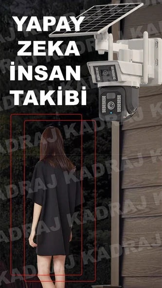 KADRAJ Solar Güvenlik Kamerası | Güneş Panelli | Çift Lensli | 4G SIM Kart Destekli | 10.000mAh Batarya | 6MP Full HD Görüntü Kalitesi