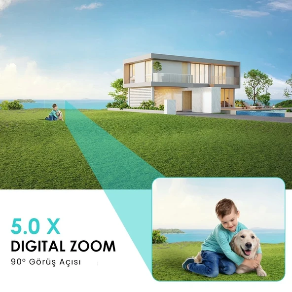 LongPlus Bebek Kamerası 360° Panoramik Kamera ve Evcil Hayvan, Monitörü - Ev Güvenlik Kamerası
