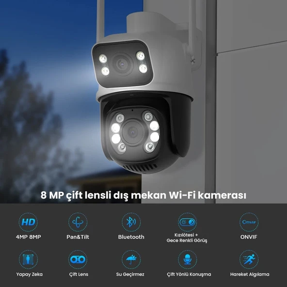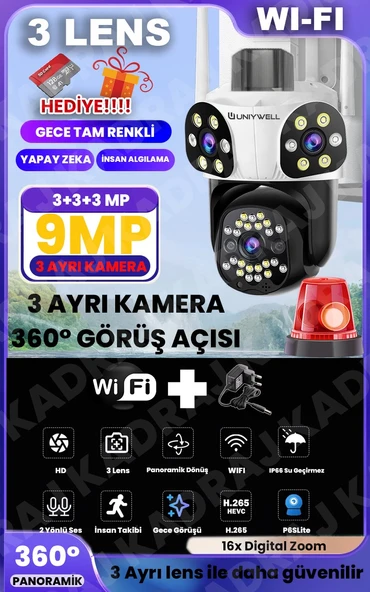 UNIYWELL 6 MP WIFI Kamera 2 LENS - Tam Renkli Gece Görüş - Su Geçirmez - 2 Yönlü Ses