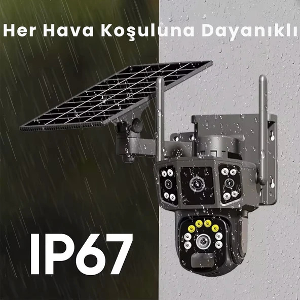 15MP 3 Kameralı Sim Kartlı Kamera, Solar Panelli Kamera,İnsan Algılama, Hareket Takibi, Sesli Alar, Çakarlı Kamera