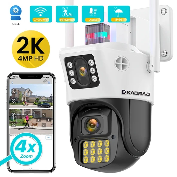 4MP HD WIFI IP Kamera Açık PTZ Çift Lensli AI İle Akıllı İzleme Güvenlik CCTV Kamera