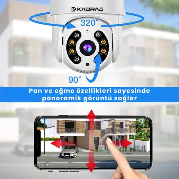 WIFI Güvenlik Kamerası | 9MP | 12V DC | 2 Yönlü Ses | Hareket Algılama | Tam Renki Gece Görüşü | Alarm | Uzaktan İzmele