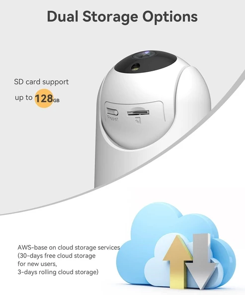 Çift Lensli 6MP, Wi-Fi Panorama Bebek Kamerası - Video Görüşme, İç Mekan Mini Kamera, Renkli Gece Görüşü