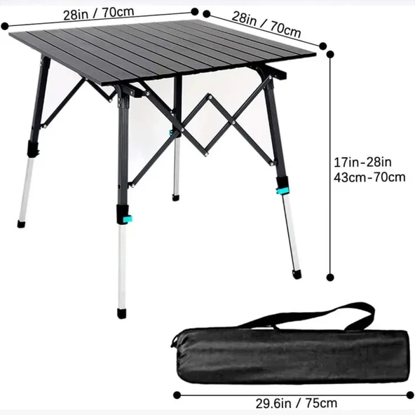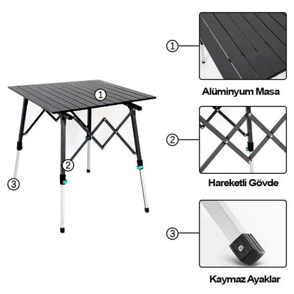 Madfox Skylite Yükseklik Ayarlı Katlanır Kamp Masası 70X70Cm