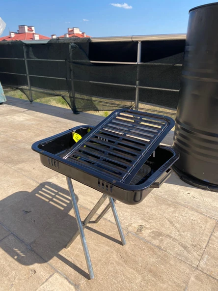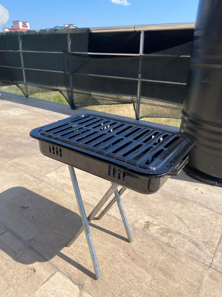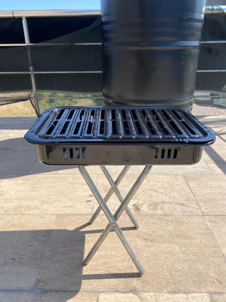 Ayaklı Emaye Kara Mangal - Yağ Oluklu