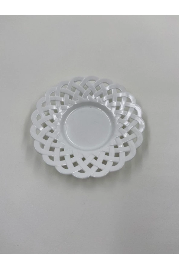 Lüks Örgü, Hasır Modelli Çay Tabağı Plastik. Porselen Görünümlü 6'lı