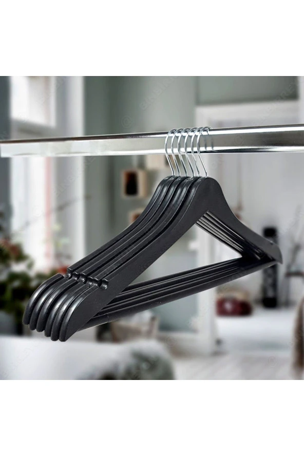 Ahşap Görünümlü Plastik A Kalite Siyah Elbise Askı 6 Adet
