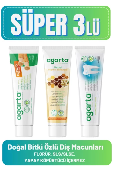 Agarta Doğal Diş Macunları(Misvak 100 ml + Propolis 100 ml + Bitki Özlü 100 ml)