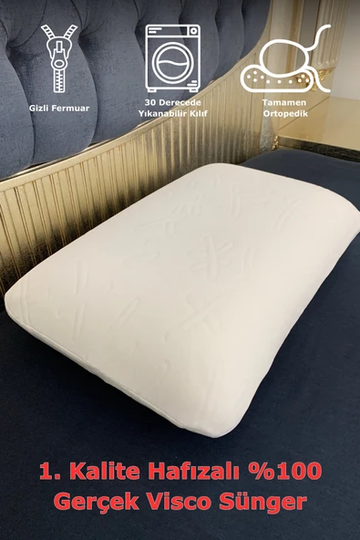 Rudu Tencel Kılıf, Ortopedik, Sertifikalı Visco Sünger Yastık 60x40x15 cm 1250gr Omuz/Boyun Destekli