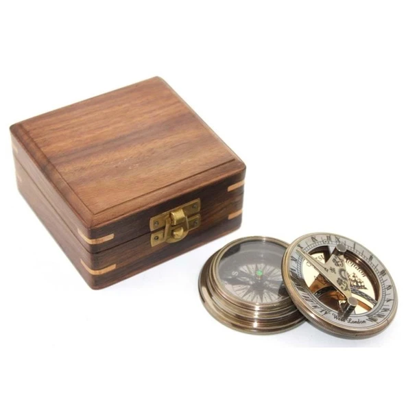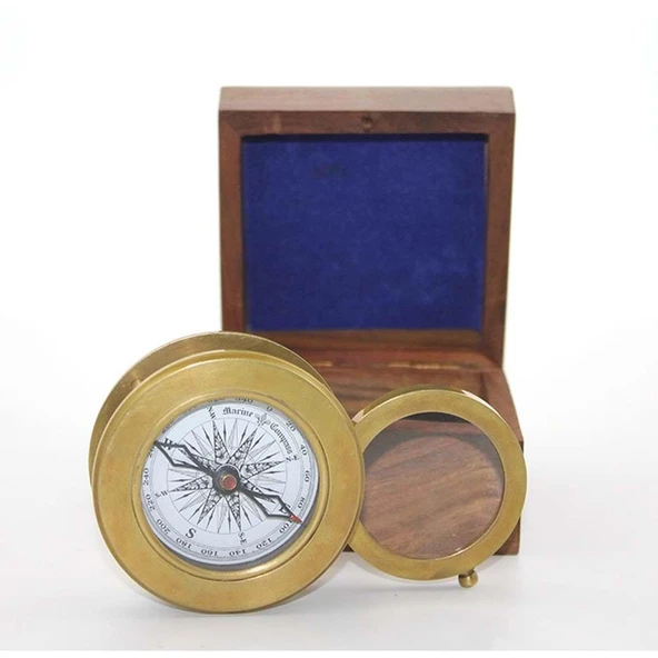 Ahşap Kutulu Pirinç Mercekli Pusula