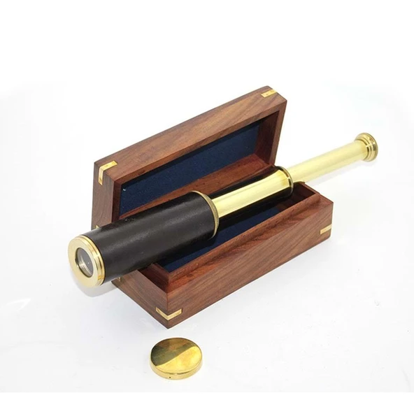 Ahşap Kutulu Deri İşlemeli Pirinç Dürbün