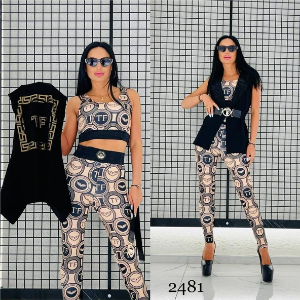 Tatu Yelekli Crystal Taşlı Üçlü Takım - SAKS