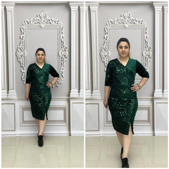 Pul Payetli Elbise - YEŞİL