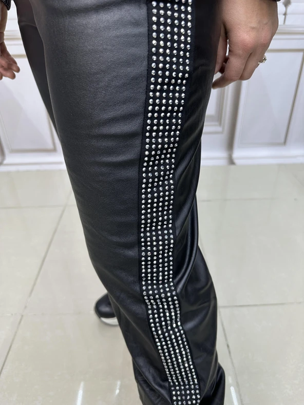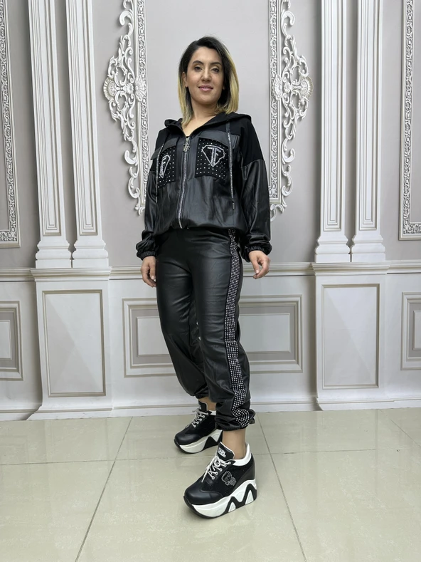 Tf Deri Crystal Taşlı Eşofman Takımı - SİYAH GOLD