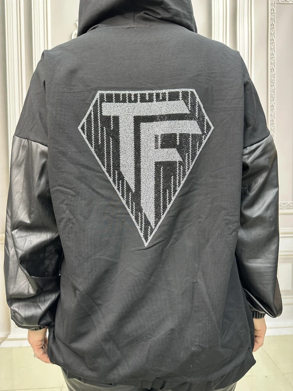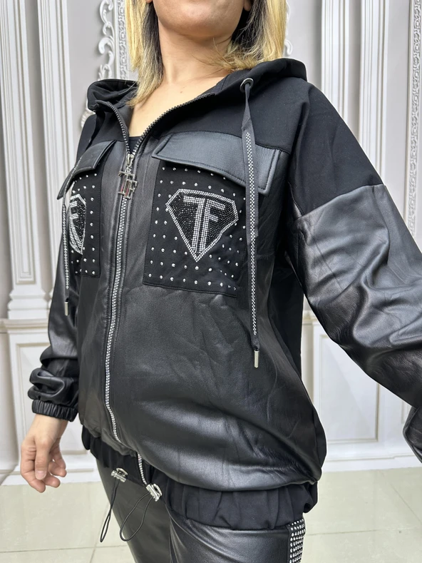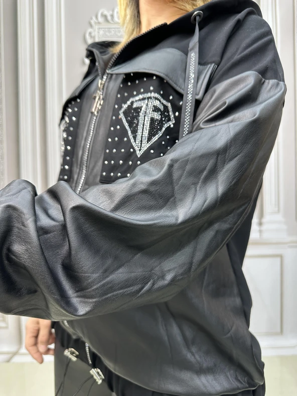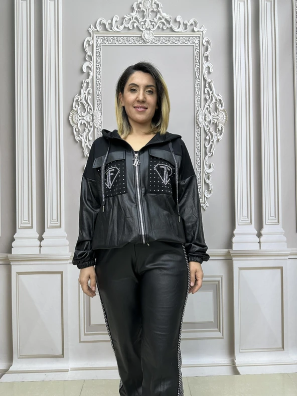 Tf Deri Crystal Taşlı Eşofman Takımı - SİYAH GÜMÜŞ