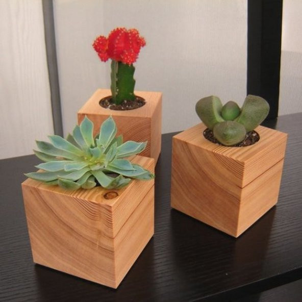 Ahşap Küp Saksı 4 adet