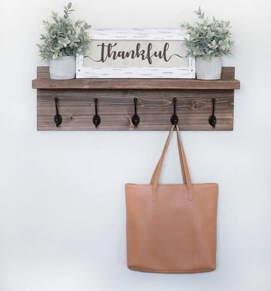 KUZELA Ahşap Rustik Raflı Askılık( 70 cm boy, 20 cm Yükseklik, 15 cm En,Kalınlık 3 cm)İndirimli ürün804,52 TL