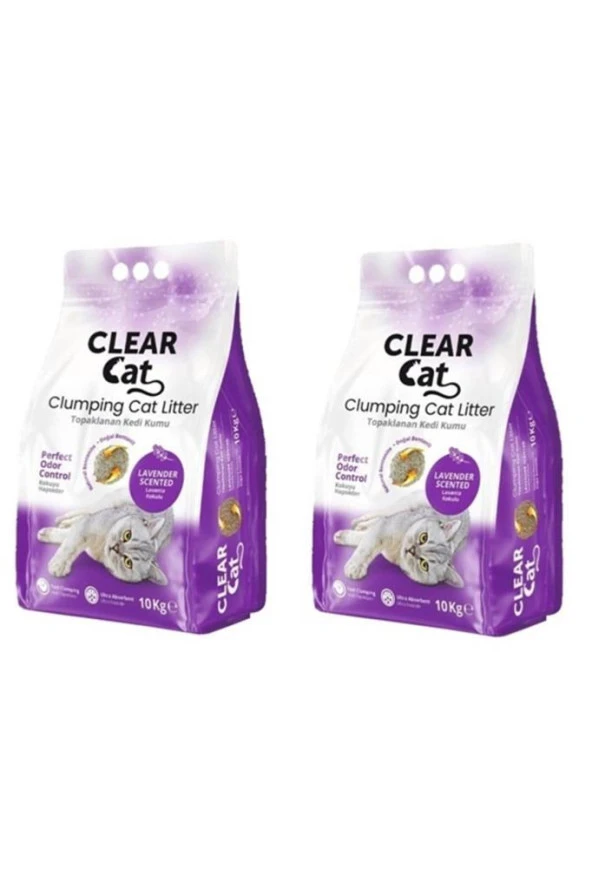 Clear Cat Pudralı Topak Bentonit Kedi Kumu İnce 10 Kg 2 adet