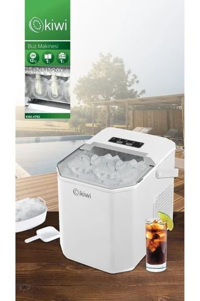Kiwi KIM-4792 Ayarlanabilir Boyutlu 12 Kg Kapasiteli Buz Makinesi Beyaz