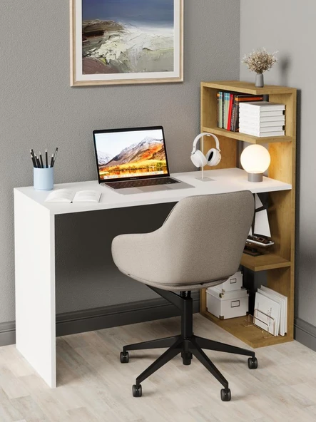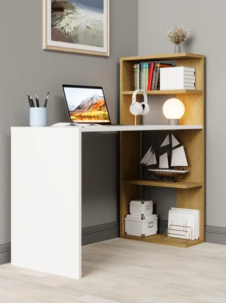 Luga Kitaplıklı Raflı Çalışma Masası Safir Meşe