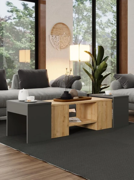 Ople Zigonlu Orta Sehpa Safir Meşe Antrasit
