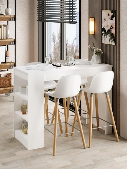 Shelfy Bar Raflı Yemek Masası Beyaz