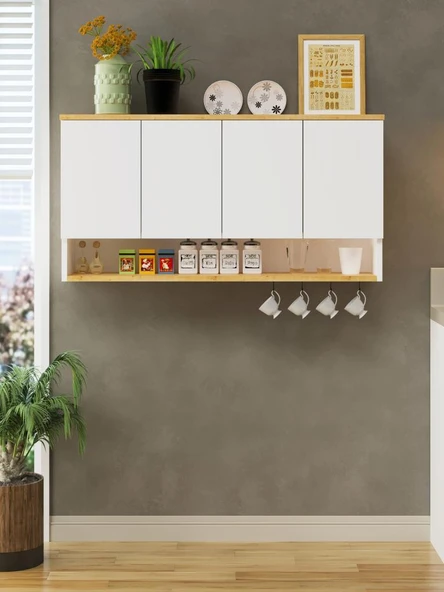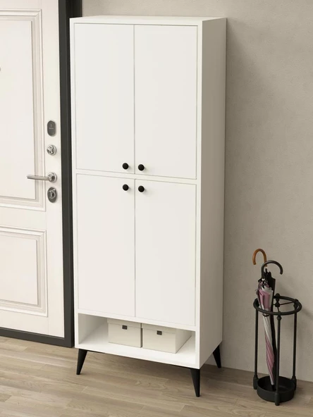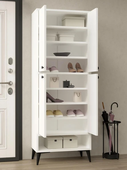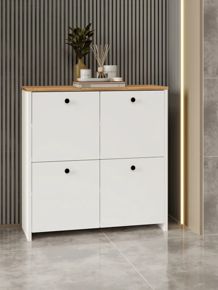 Kuzeylife Shiva Ayakkabılık 4 Kapaklı 4 Raflı Çok Amaçlı Dolap Beyaz-Safir Meşe