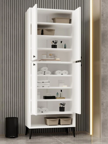 Kuzeylife Novensa Çok Amaçlı Erzak-Kiler Dolabı İki Kapaklı Beyaz