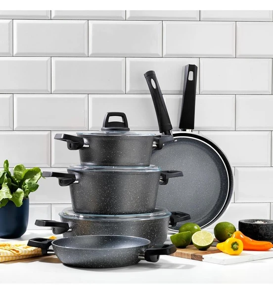 Schafer Ashen Tencere Seti 9 Parça-Gri