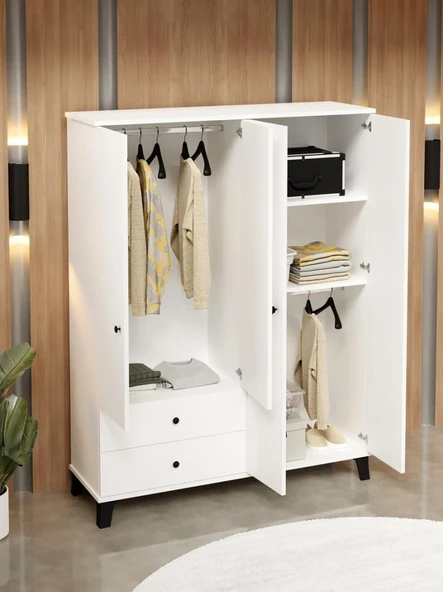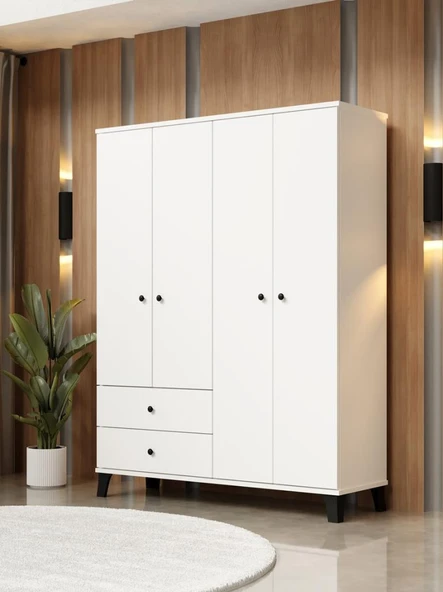 Kuzeylife 4 Kapaklı 6 Raflı Ekstra Derin Gardrop-52 cm Derinlik