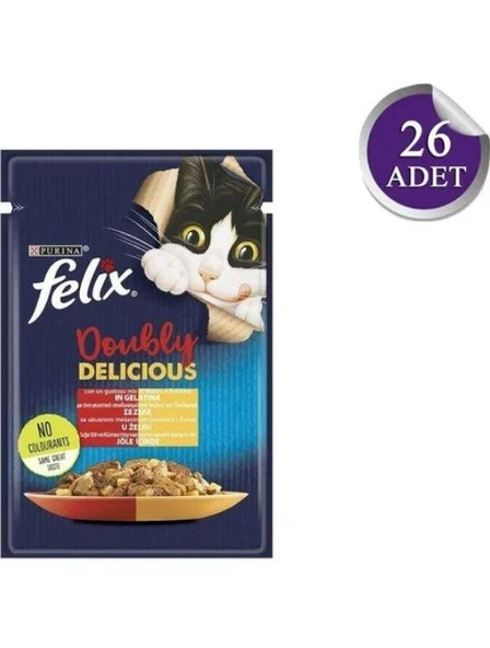 Felix Çifte Lezzet Sığır & Tavuklu Kedi Yaş Mama 85 Gr*26 Adet