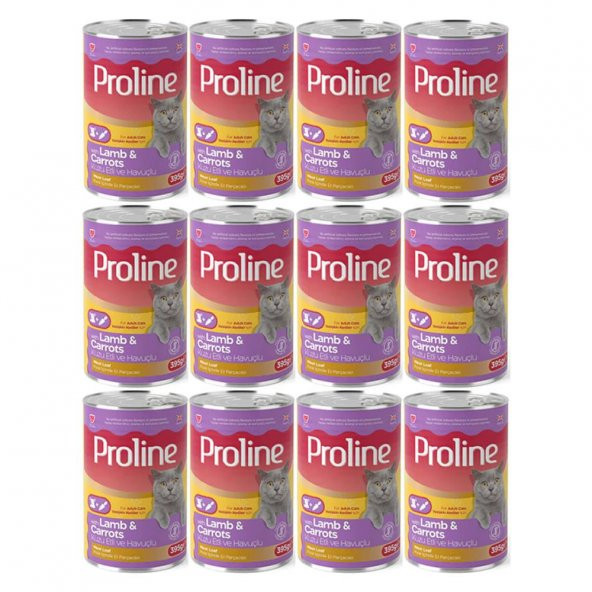 Proline Kuzu Etli ve Havuçlu Pate Et Parçalı Kedi Konservesi 395 Gr*12 Adet