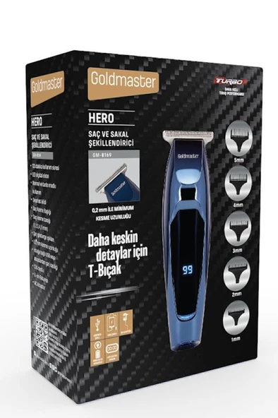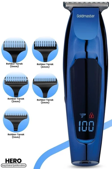 GoldMaster Hero Led Ekranlı Paslanmaz Çelik Başlıklı Saç Sakal Şekillendirme Makinesi Gm8169